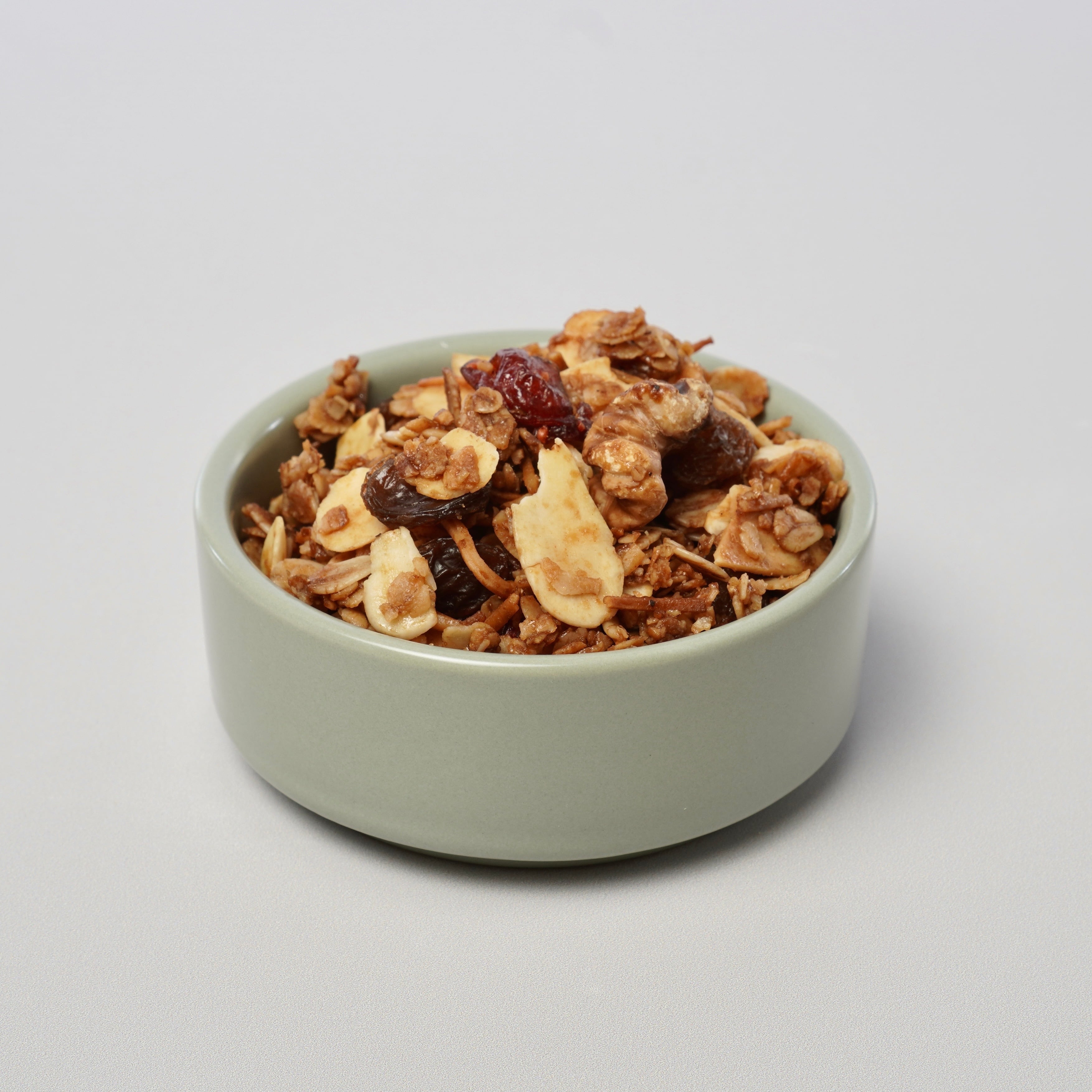 ナッツやオートミールを黒糖とシナモンで風味付けし、じっくりローストして仕上げた自家製グラノーラ。