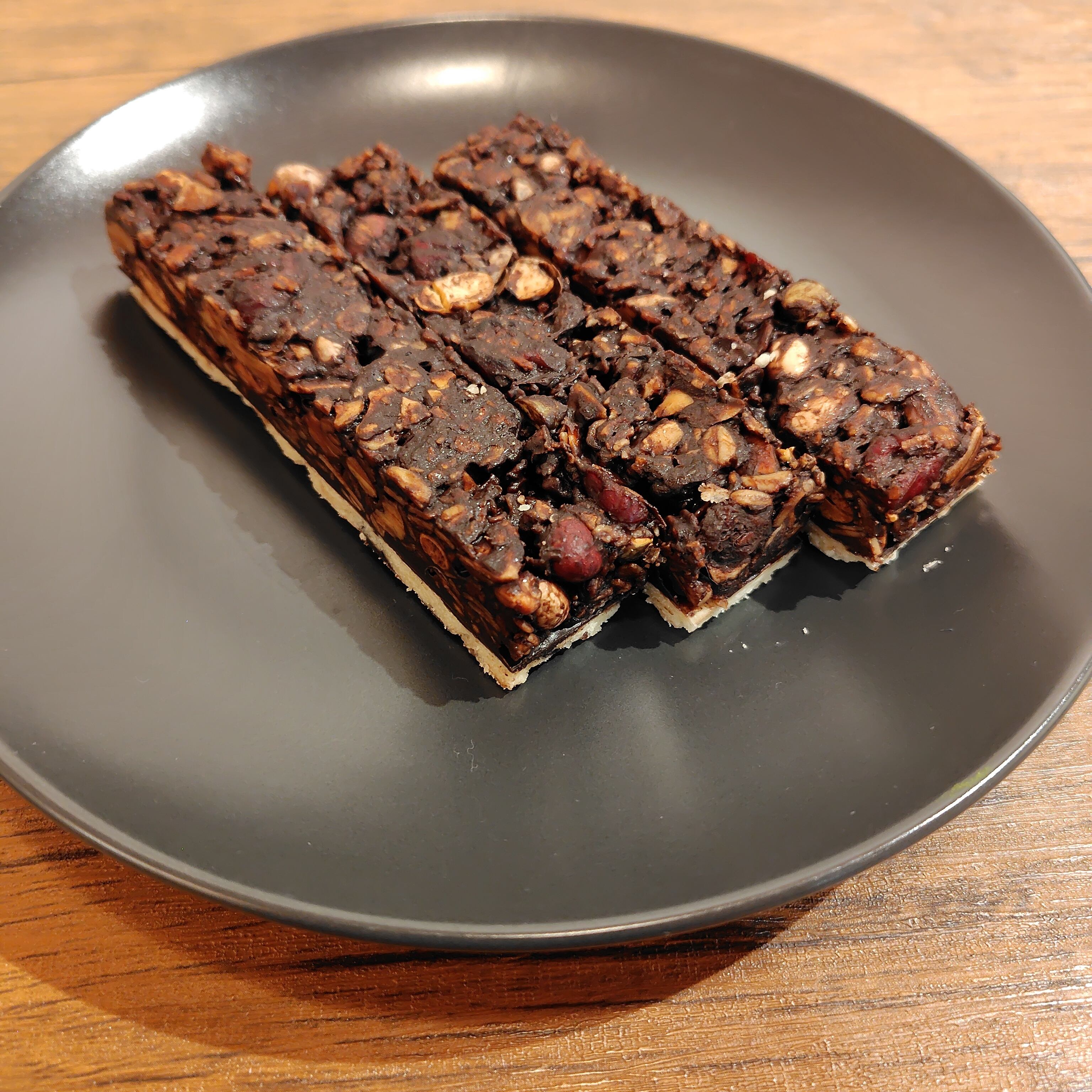 自家製グラノーラをビターチョコレートでコーティングし、オリジナルのタルト生地と組み合わせたスティック状のシリアルバー。